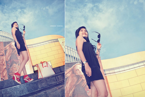 I like how the heels contrast with color against the darker colors of the car and dress. You put this together very well!