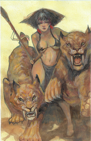 I remember this image as the cover for the Burroughs book "The Cave Girl"; outstanding work! great tribute