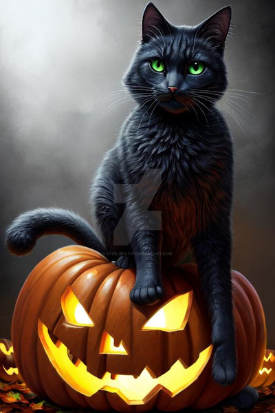 #halloween #digitalart #cats #clouds #pumpkin #spiders
