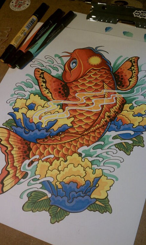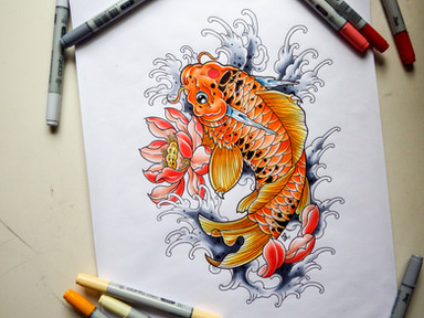 #bright #design #fish #japanese #koi #tattoo #tattoos #traditional #traditionaljapanese #water #brightcolors #coloredpencil #coloredpencils #colouredpencils #koifish #pencildrawing #tattooart #tattoodesign #colortattoo #traditionaltattoo #japanesetattoodesign