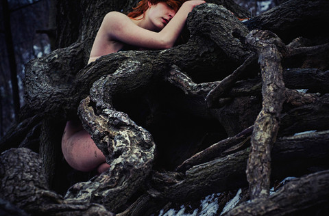 This very special photograph features the two things I love most in this world. Red haired, pale women and the mossy, entangled roots and branches of a lush forest.