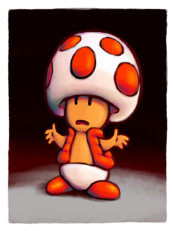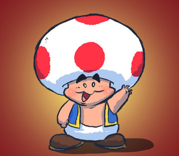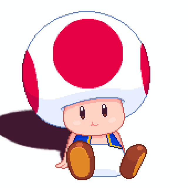 ctirique: the pants don't look like they're in the same style as the rest of toad! i recommend using a full color in the pants and no outline, maybe just a very thin slightly darker line.