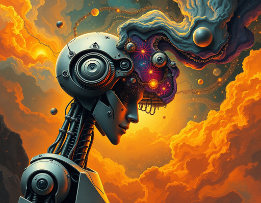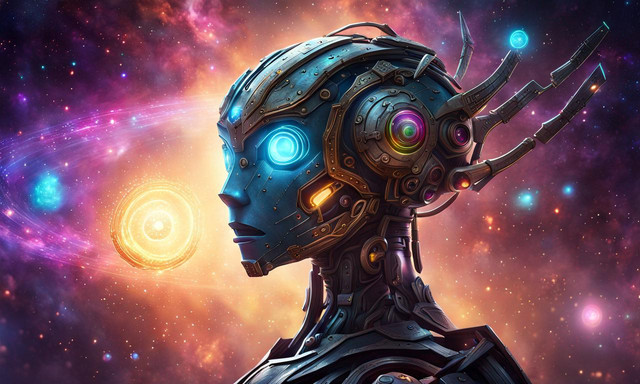 #scifi #robot #cyborg #portrait #abstract #ai #awakening #colourful #cosmic #evolution #fantasyart #fractured #retrofuturism #scififantasy #surrealism #technology #dreamup #ai_art