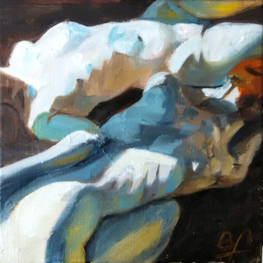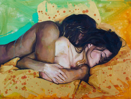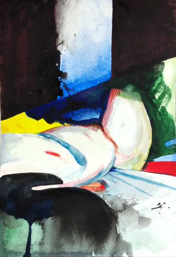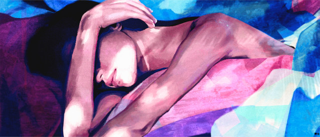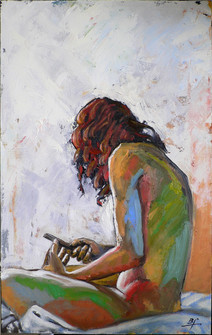 Toujours ta palette originale, mais il me semble que ton dessin est plus....moëlleux? Moins incisif? Tu peins très bien les femmes, sûr!