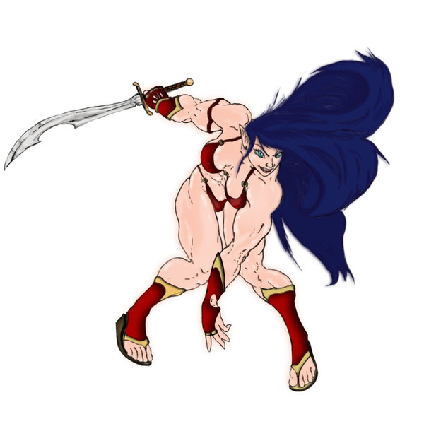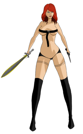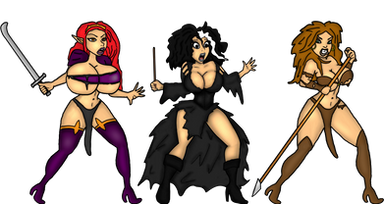 First one with all six nipples covered. I am guessing that means no nudity in this picture. In the middle a barbarian visiting drow city by Badhand.