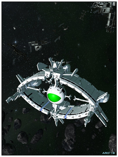 This station reminds me of the ship in the early 80ies anime titled "Odysseus 31" ...