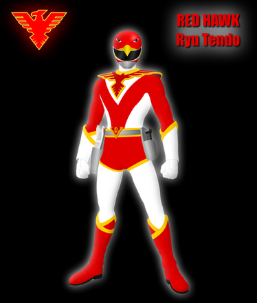 "Red Hawk!"Ryu Tendo (天堂 竜 Tendō Ryū) is Red Hawk (レッドホークReddo Hōku), he was originally a Sky Forcer code-named "W6" and leader of the Jetmen .