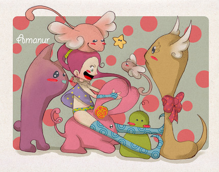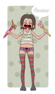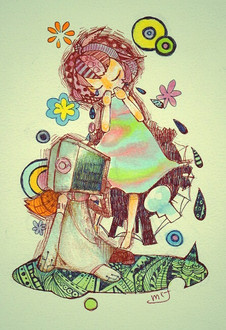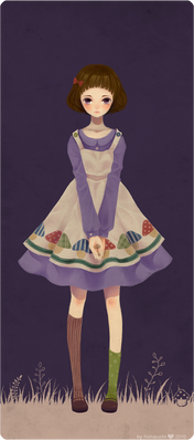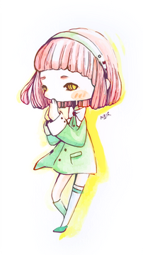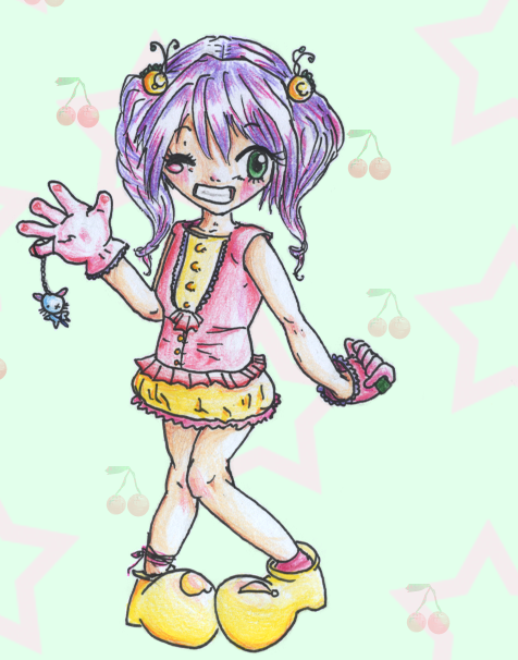 I like her little boots and her pants. And her socks. The pink and green go very well together. I sorta wish the outline were tapered with her hair, though.