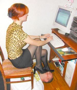 "Warm and cozy office for his mistress, and his face as the best footstool for her heels"