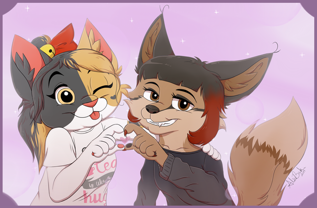 These two characters of mine were nameless for a while so I drew them together after I finally came up with something just to announce it, so the fennec girl on the right is Kieta, and the cat is Saya. Kieta was a name that stuck with me and Saya was a suggestion.For the past 3 weeks I've been so busy with working on requests that I started to miss drawing my own characters and I really wanted to make some improvements to their designs so there are some new features to these characters that I've added