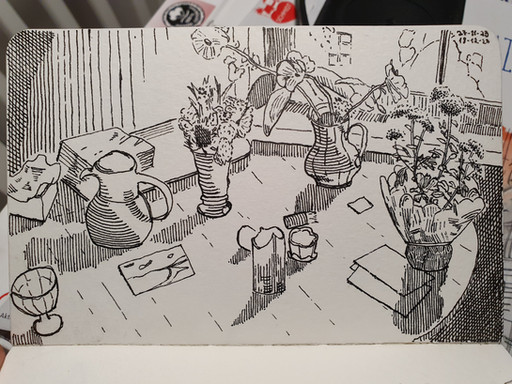 #traditionalart #kitchen #mixedmedia #sunlight #whitegelpen #rollerballpen