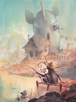 I really like how you did then type. It fits so well! And typography in pictures usually make everything look flatter, but this looks like it is really floating there. And the figure is also lovely. So many little details that really work!