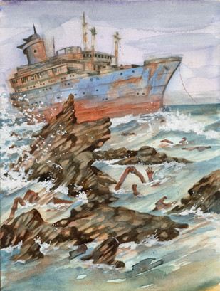 I really like how you painted the waves. It looks like they were made with pieces of cardboard and were glued together; it makes it look really cool and stylish!