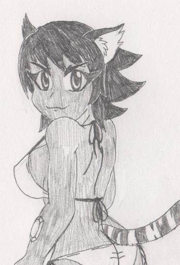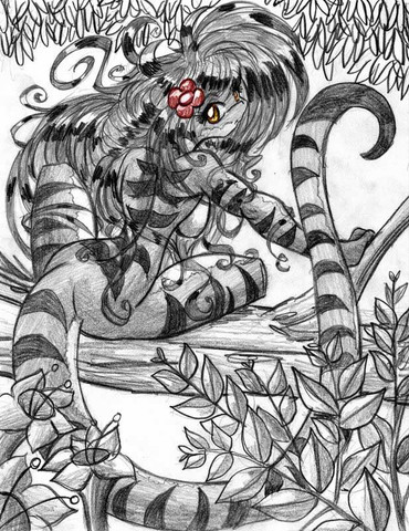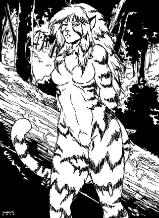 oh wow...so cool! Not especially a fan of anthro art, but this is really good...the black and white works well, it looks like a cell from a graphic novel...and the stripes, despite being part of her markings, remind me of sunlight through drawn blinds...its a very seductive piece