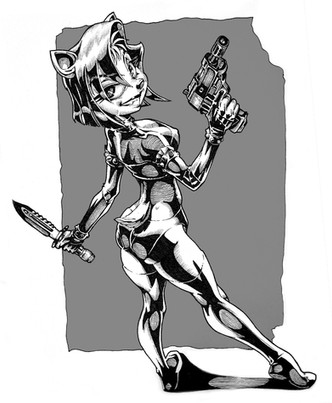 She better be careful where she's got that sword O.o I really like the hair and her face tho