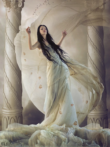 Overall this piece is beautiful. I see many stories in this one picture. It makes me wonder if she is running from something dark to the light. Or perhaps search from a lost someone. I love the lighting and the shading on her billowing skirt. I feel the piece would have been more complete if the floor was horizontal as the crookedness is a bit distracting for me. At the same time, I can also see how the elevated floor may signify the difficulty of her leaving something dark behind for something more bright and pure. If you don't mind, I would love to know if this was an intentional decision. Also, the hand holding the skirt is somewhat lost, blending in with the paleness of her skirt. But those are the only two things that really stand out for me. Beautiful work and great job!