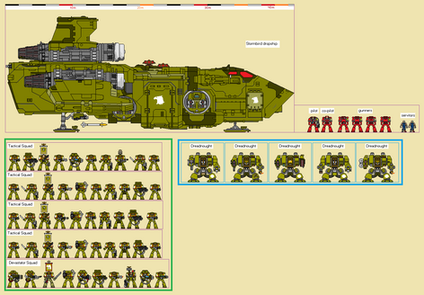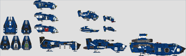 Astartes Landing Craft are orbital-assault vehicles designed to quickly deliver within thirty minutes of leaving their warship vehicles and troops to a planet’s surface and into action, equipped with large hydraulic clamps able to carry up to six armoured vehicles, six dreadnoughts or four leviathan or a complement of troops. The landing craft is armed with various weapons systems such as multiple twin-linked heavy bolters and a pair of annihilator las-cannon turrets.