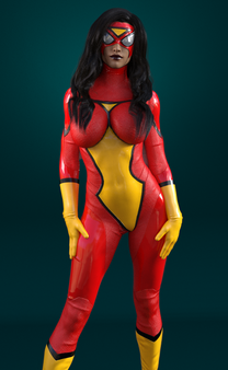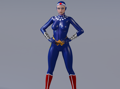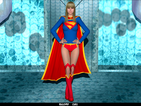 I love the shadow of her on the ground complimenting your lighting technique and giving it a realistic approach. The shiny floor is well done. Your shadowing throughout the whole picture gives it a realistic effect. I really love her hair color and styling. Very beautiful and well stranded. Her facial structure is stunning and her body looks gorgeous. Nice job with applying her outfit and how form fitting it is.