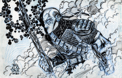 let's try some color😃#Deathstroke #TheTerminator #pinup #DCComics #commission #color #doodle #drawing #sketch #Prismamarkers