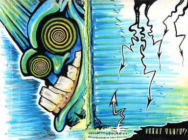 "Sun Child (Rick Griffin)", 12 X 16". Acrylic on Panel. My homage to one of my primary influences, surf and rock poster artist Rick Griffin, RIP.Available. PM for price info.