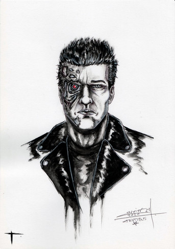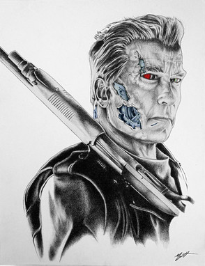 he said he'll be back and he has ! as this awesome preserved picture drawing of the same cyborg that once had to destroy himself because his work from the past is done but now he has risen , so awesome work