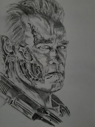 Pencil and charcoal sketch of the terminatorRelated content