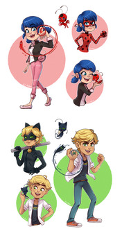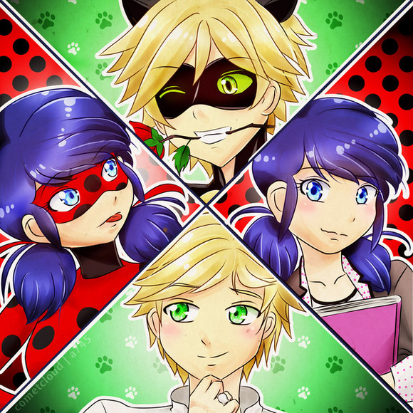 Here I am with a pic of Miraculous, again. I chose 4 Marinette & Adrien's transformations.