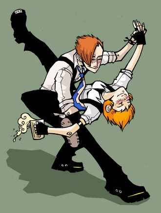 wow....if i had a sword and a kid like that around me, i'd probly be cleaning gooey sticky red stuff off my neato sword later. hehe i like this Buddy characters' expression.