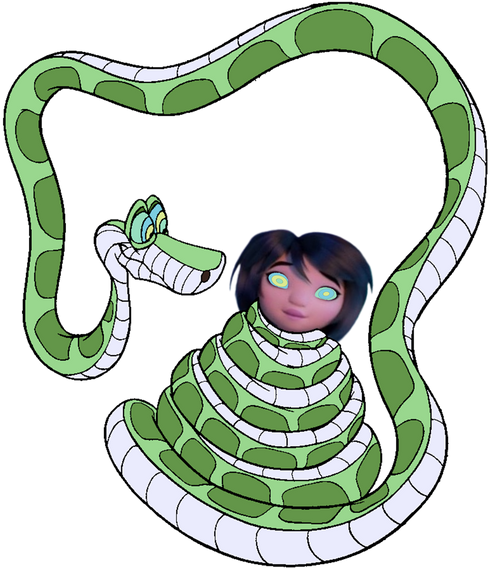 Me: ( wearing a blindfold ) No! No! This is NOT how Rudyard Kipling wanted you to be, Kaa. ( grabs him by the neck ) now, get back out there, get your act together, stop messing around with the humans and have birds or lizards instead, and be faithful to the source material.