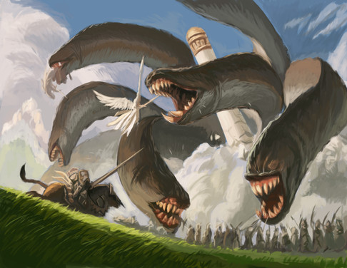 "hay, um guys, i, I I'll let you go first, I'll, count giant snake heads from WAY back here"