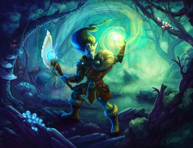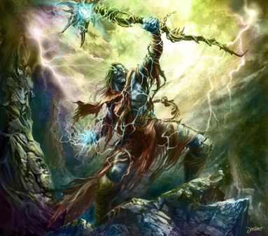 Cool light and glyph effects here, the character has a fantastic amount of detail, great job on the forest and battle in the background as well.