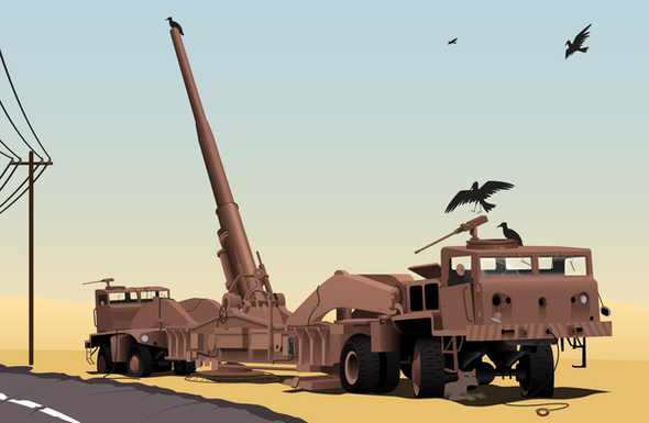 That's cool! I'm guessing you used Illustrator? And, if that guess is correct, you used the Crystalize tool for the break in the back of the turret?
