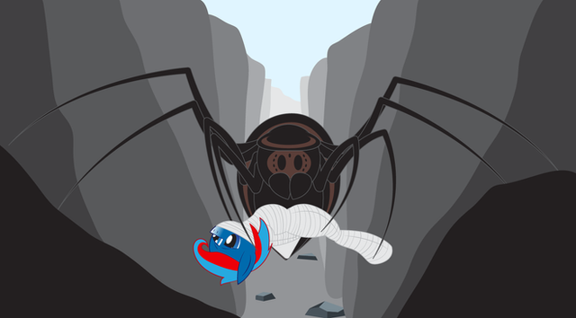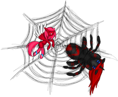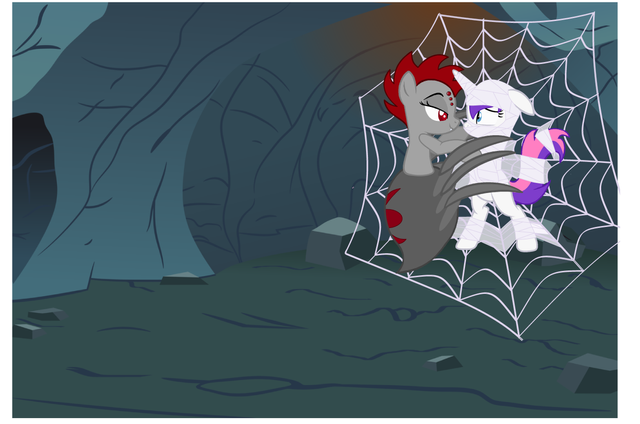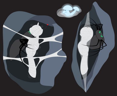 A lot of ponies will defend that driders are better than normal giant spiders. Driders are smarter and safer while giant spiders are unpredictable and unsafe. All that is true and that's what I find so enthralling about spiders, I crave that thrill.The moment I drop into "His" web, the large spider will zip out to see what just fell in. I'll struggle a little, nothing violent, just small movements to let him know I'm here and ready for wrapping. The spider will watch, giving my belly a few ticklish pokes, I giggle as he then gets to work, attaching thick lines to better suspend my body. He then goes about wrapping me up, thick sheets of glue laden swathes are firmly pressed and applied to my body, fitting my form perfectly, normal spiders would be very quick with wrapping and use thin sheets, but my spider knows from past experience that I won't fight being wrapped, I'll let him wrap me up like a helpless moth, unable to resist the web's embrace. To ensure my full cooperation, he skitters to me and sinks his fangs into my shoulder, I moan loudly as the venom ran through my veins, making me feel limp and sensitive, his wraps make my poisoned body sing in pleasure as more of me is cocooned with care.