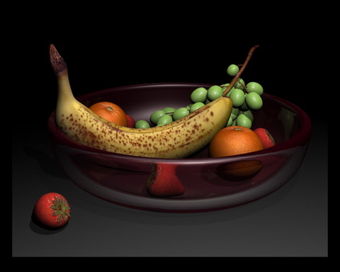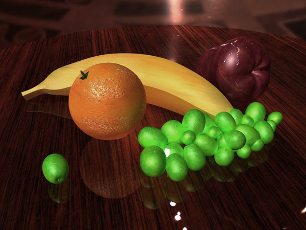 Wow! I do 3d artwork, and this is cool! I like how the Banana has an appearance of pigmentation, and is not as reflective. Sort of resembles a low reflective powder coat on a car.