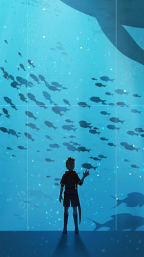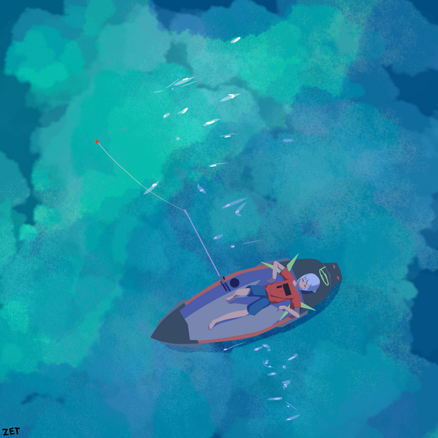 #sea #beach #blue #fish #lineless #oc #ocean #originalcharacter #scenery