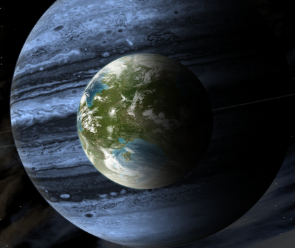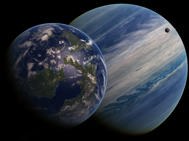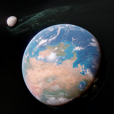 Here is a zoom in of the moons Elohim and Nathaniel from the main human colony ship as it entered into the Iofiel's moon system, 80 years ago. In this picture one can clearly see 3 of Elohim's main continents: Shambhala is the south, Kawaiki in the center of the image, and Zeelandia to the extreme left.Shambhala is named after an ancient Buddhist kingdom that supposedly existed somewhere in the Himalayas, hidden from the eyes of the rest of the world. The continent was named as such because it is extremely mountainous, with some of the highest peaks in all of Elohim.