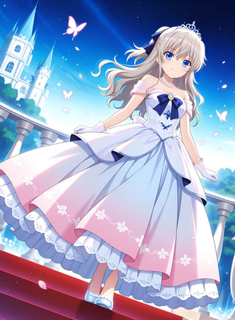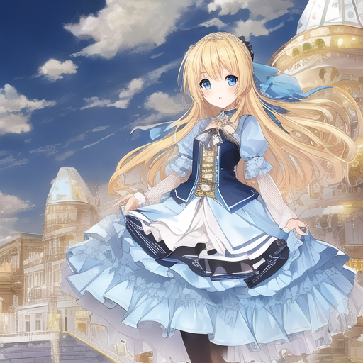 #rose #blondehair #bluedress #castle #commission #originalcharacter #twintails #girlfemalewoman