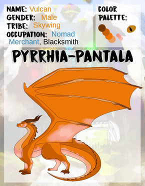 Backstory: Vulcan grew up basically in secret with his sister, being cared for by his mother who was a royal guard for queen Firestorm (ex-queen Scarlet's mother). He was a good child and would never follow Magness to the local village. His father left when he discovered Vulcan was a flamescale, like his mother even though she was a weaker one and couldn't hurt anyone. Vulcan was to always stay either at home or at most 10 meters near home so he couldn't be caught or anything bad would happen. He soon formed depression due to never being able to go outside or socialize. Magness discovered this and told him she would take him to the local village. All was doing fine, until Magness saw one of her enemies at work, Vulcan then "accidentally" tripped over onto a stall, set it on fire, which then caused a wooden beam to drop onto Magness's enemy, squashing, and killing them. Vulcan then knew something in Magness had awoken...