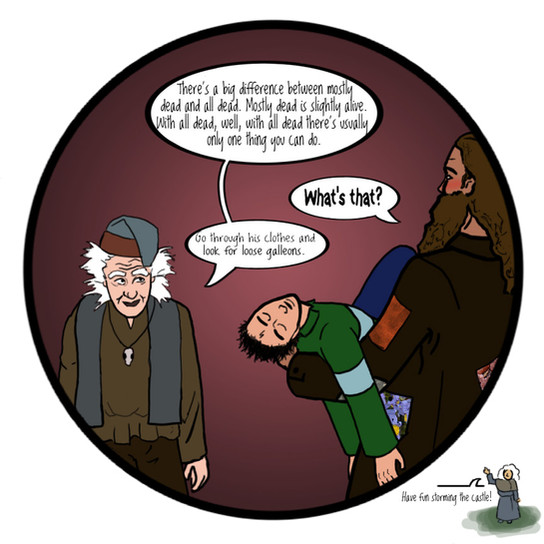Rincewind: *yawns and wakes up. He looks down and his eyes widen* This was not how I feel asleep..