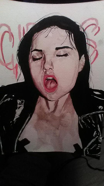 Crummy picture, but good news is I've been working again. I'm working on a series of portraits of Sasha Grey.All hand drawn and cut stencils, acrylic on wood, with different illustrations on the background.