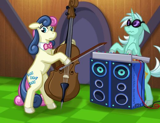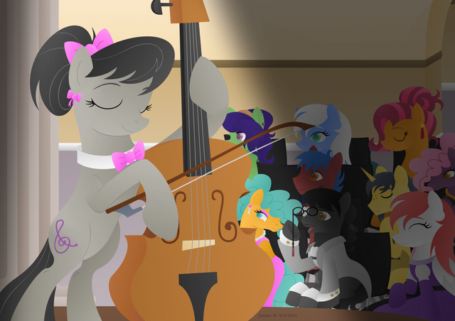 This one was a request from a dear friend, who wanted to see some sparks between the ever-popular background ponies, Octavia and Lyra, with their rivalry based off the fanfic story "Alegrezza", as she put it.