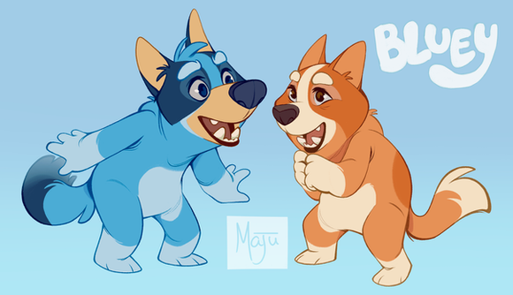 I just love this show.I have been wanting to make a piece like this for a few years now, where I draw em as normal dogs, in my style. So here it is, Bingo and Bluey.