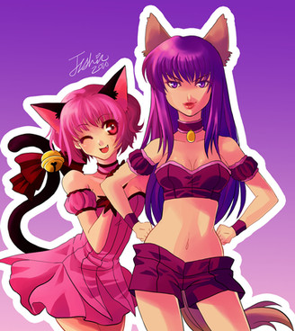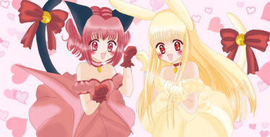 A while back i felt like doing some Tokyo Mew Mew fanart, but never got to finish it due to my computer messing up. Now that i got a new computer,i was finally able to finish this one! Here is Mew Ichigo with my original Mew Mew character Mew Raspberry =^w^=