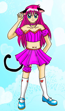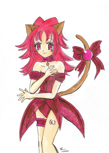Yay! I have finally drawn my old Tokyo Mew Mew OC, Mew Raspberry. I originally came up with her ages ago when i was really obsessed with Tokyo Mew Mew. Probably like 10 to 12 years ago!! Ive been meaning to redraw her for a while, but ive been too lazy to do so til now.I havent changed her design too much from what i originally came up with. Same colors, or as close as i could get. Slightly different outfit, but not too different. Originally i had her hair longer, but i like this more. As for the animal she is.....well, in the manga/anime, all the girls were fused wit endangered animals. I thought it would be cool for her to be fused with an extinct animal. So, she is a Tasmanian Tiger :3