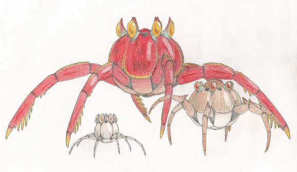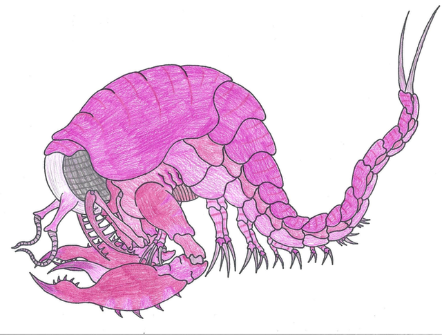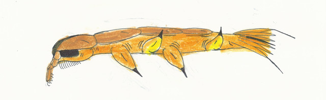 Radishrimp represent an amazing biological feat: they are anatomically radial, but have evolved to be bilaterally symmetrical. Due to the basic anatomy of Epimethian radial organisms, radishrimp eyes are located at the end of their "tail", while mouth and legs are at the front. This bizarre body form is suitabe to salt water, fresh water, and even the land.Related content
