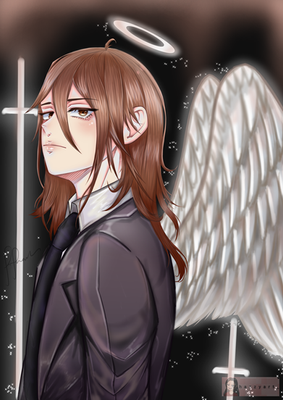 #angel #angel_devil #angeldevil #chainsaw #chainsawman #cherries #cherry #devil #long_hair #man #suit #tie #red_eyes #red_hair #chainsaw_man #チェンソーマン