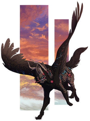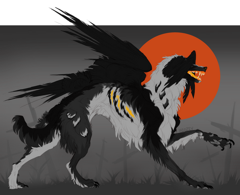 #canine #eyes #horns #pose #wings #wolf #demonwolf #multipleeyes #wingedwolf