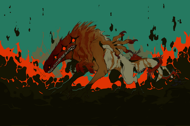 #black #canine #conjurer #digitalart #feral #purple #red #medibang #darkmagic #fourheads