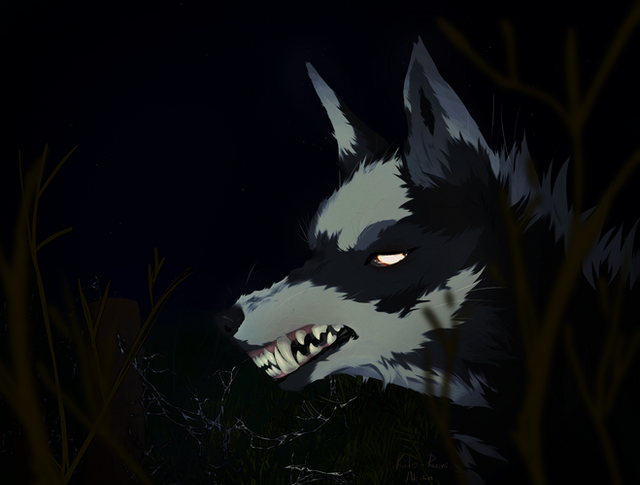 #canine #dark #digitalart #feral #moon #snarl #wolf #medibang #originalcharacter