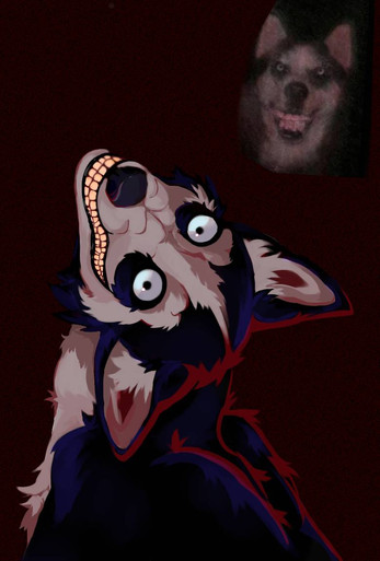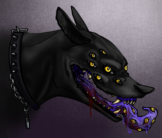 #black #canine #dog #eyes #feral #green #yellow #medibang #digitalart #multipleeyes #possession